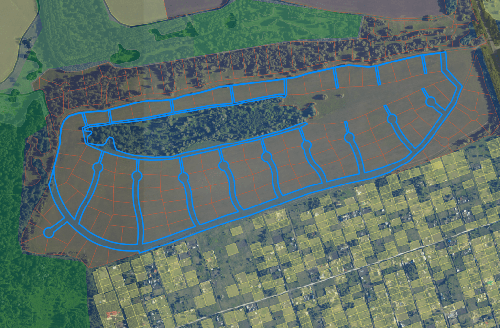 Я специально добавил сюда соседний дачный массив чтобы было понятно насколько отличается подход в планировке территорий «у нас» и «у них». В общем как и должны отличаться прошлый век и настоящее.